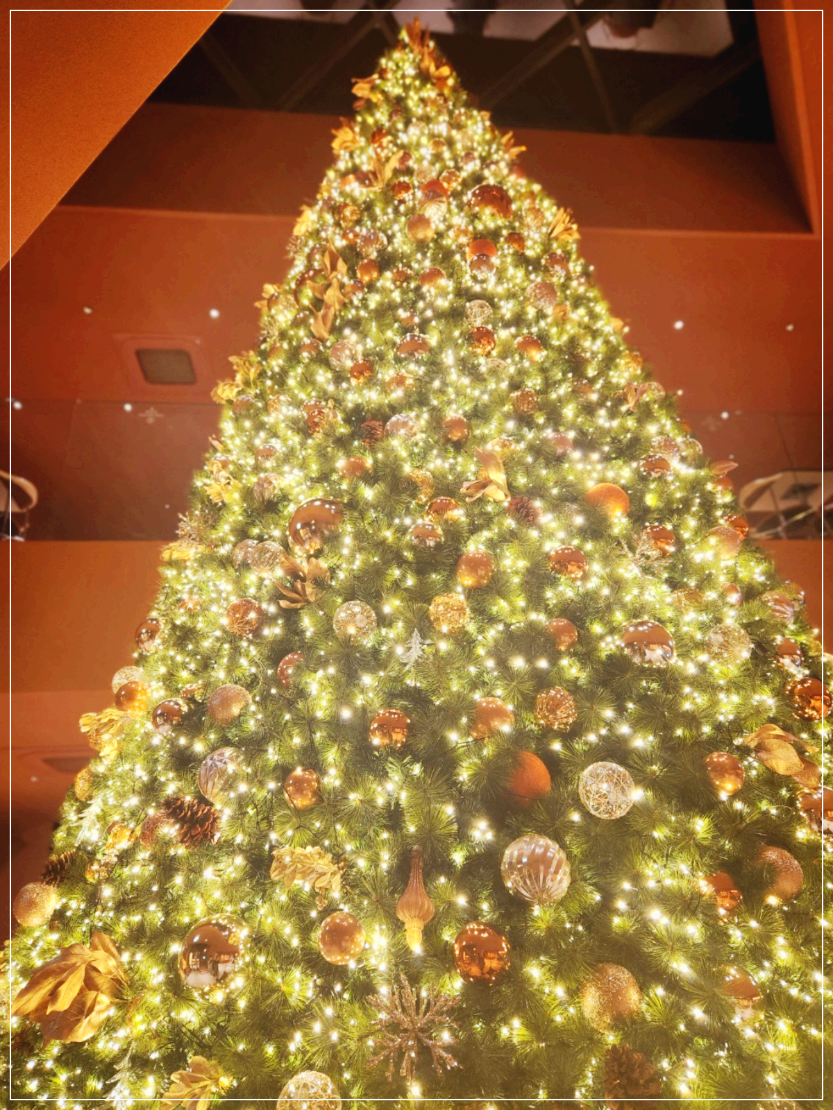 눈을 떼지 못했다. 너무 예쁘다 너무 예쁜 오너먼트, 반짝이는 조명, 고개가 절로 위로 올라가는 큰 트리!!