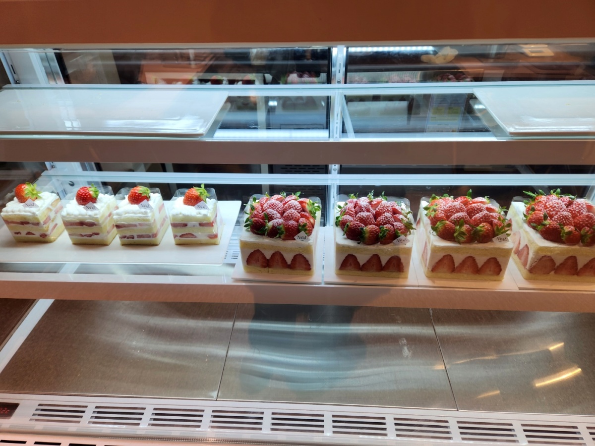 진열되어 있는 홀케이크가 너무 먹음직 하고 예쁜 딸기 케이크라.. 혹시나 하는 마음에 홀케이크의 구매가 가능한지 물어봤지만 ㅠㅠ 역시나 홀케이크는 예약한 케이크라 안된다고 하셨다. 저기에 4개나 있었지만, 살 수 없었다. ㅠㅠ
