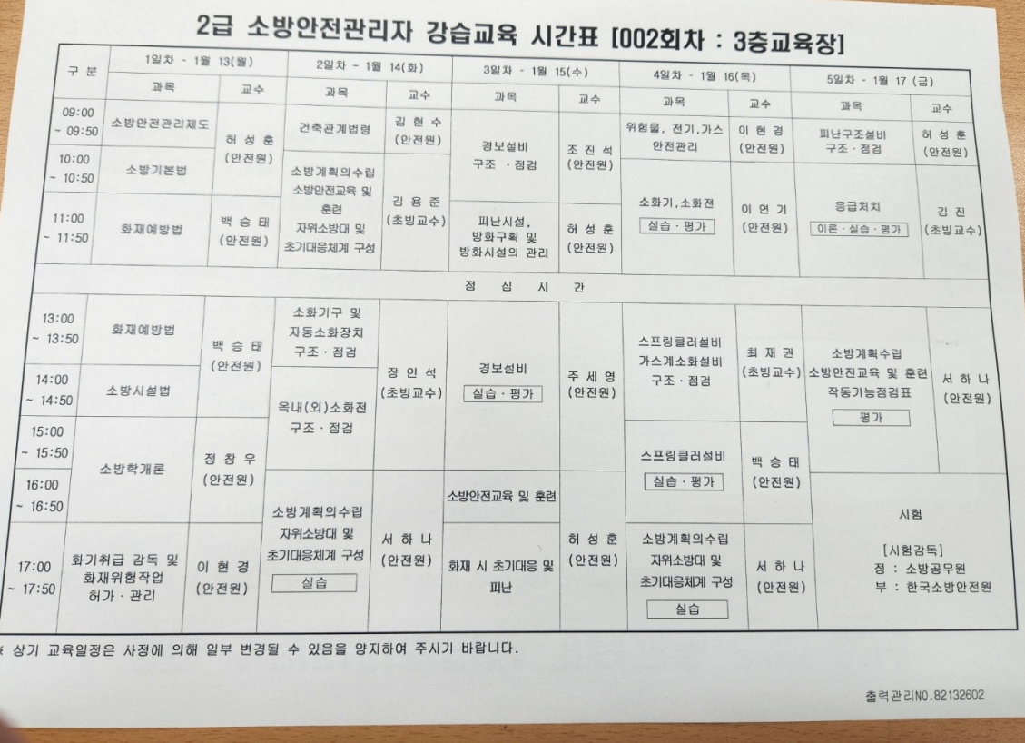 수업시간표를 보면.. 평소에 들어보았던 것은 소화기, 스프링 쿨러 정도 아는건데.. 이 안에 정말 많은 내용을 가지고 있다. 아니..