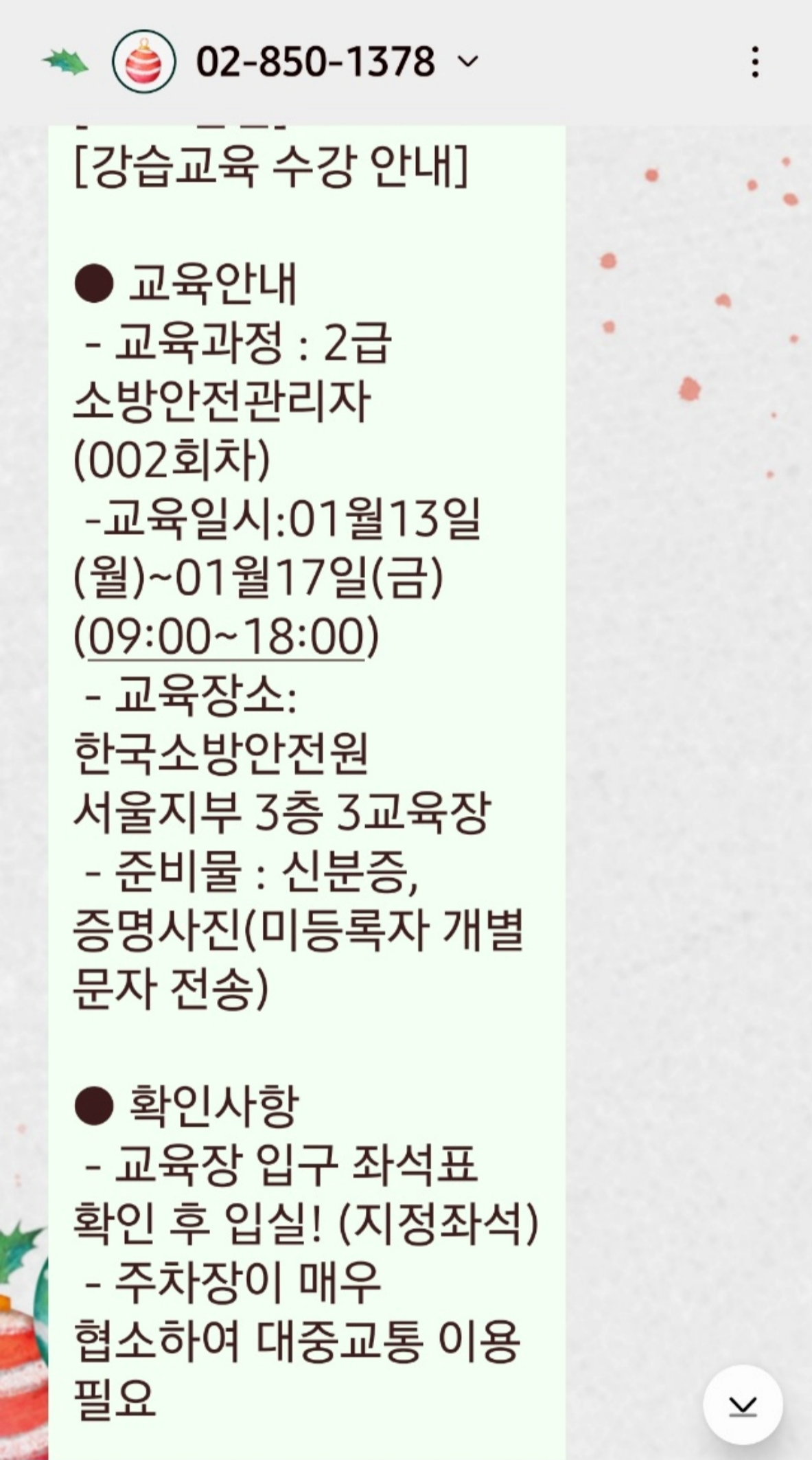 교육전주 금요일에 두둥!! 문자를 보내 준다.