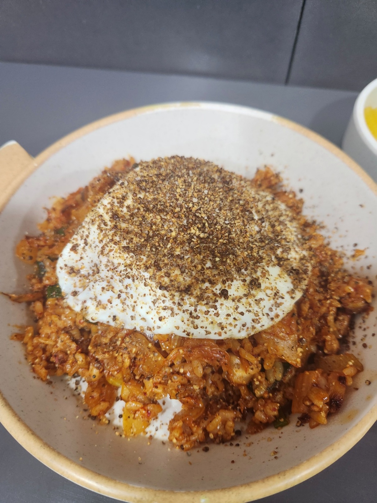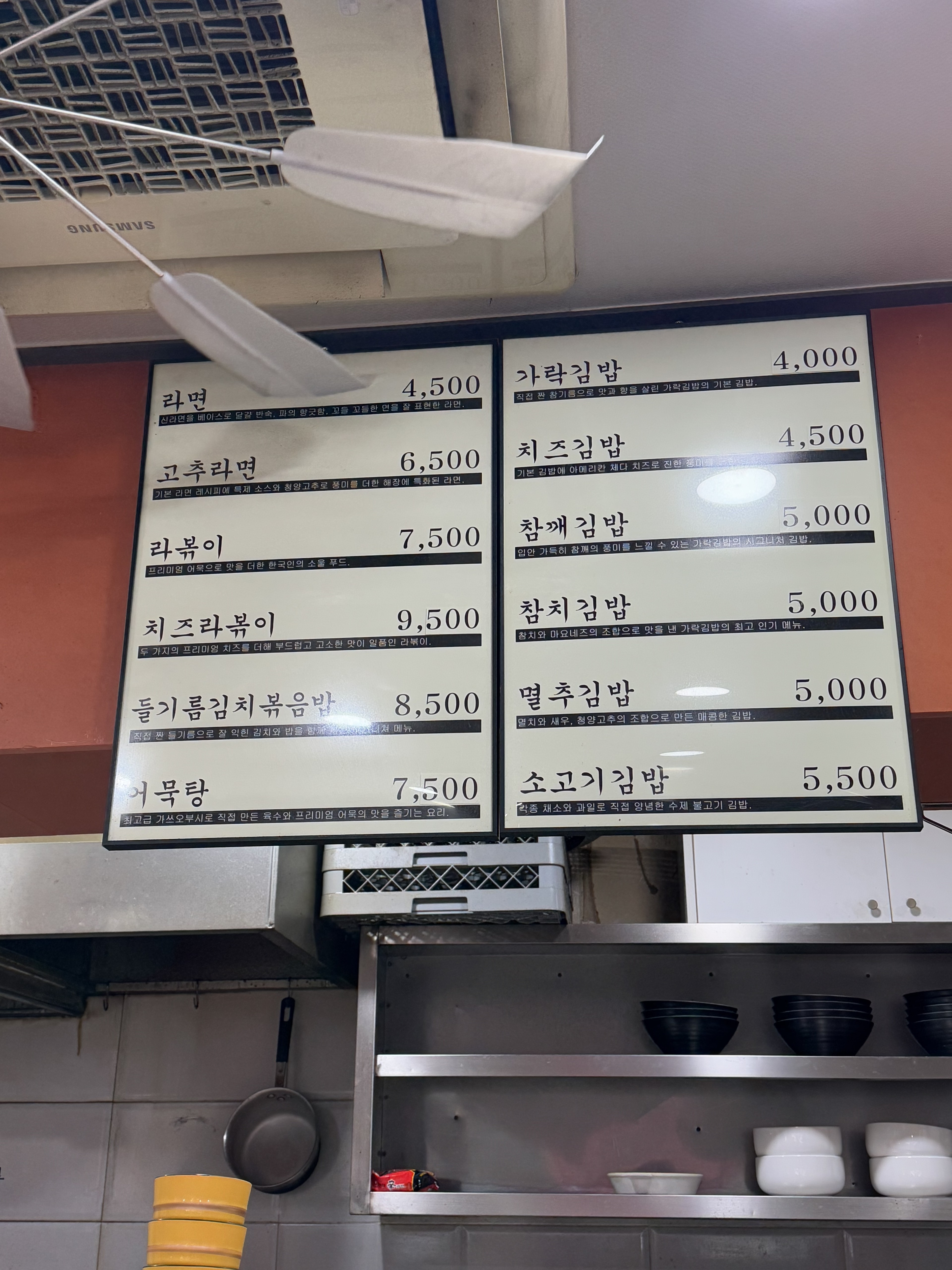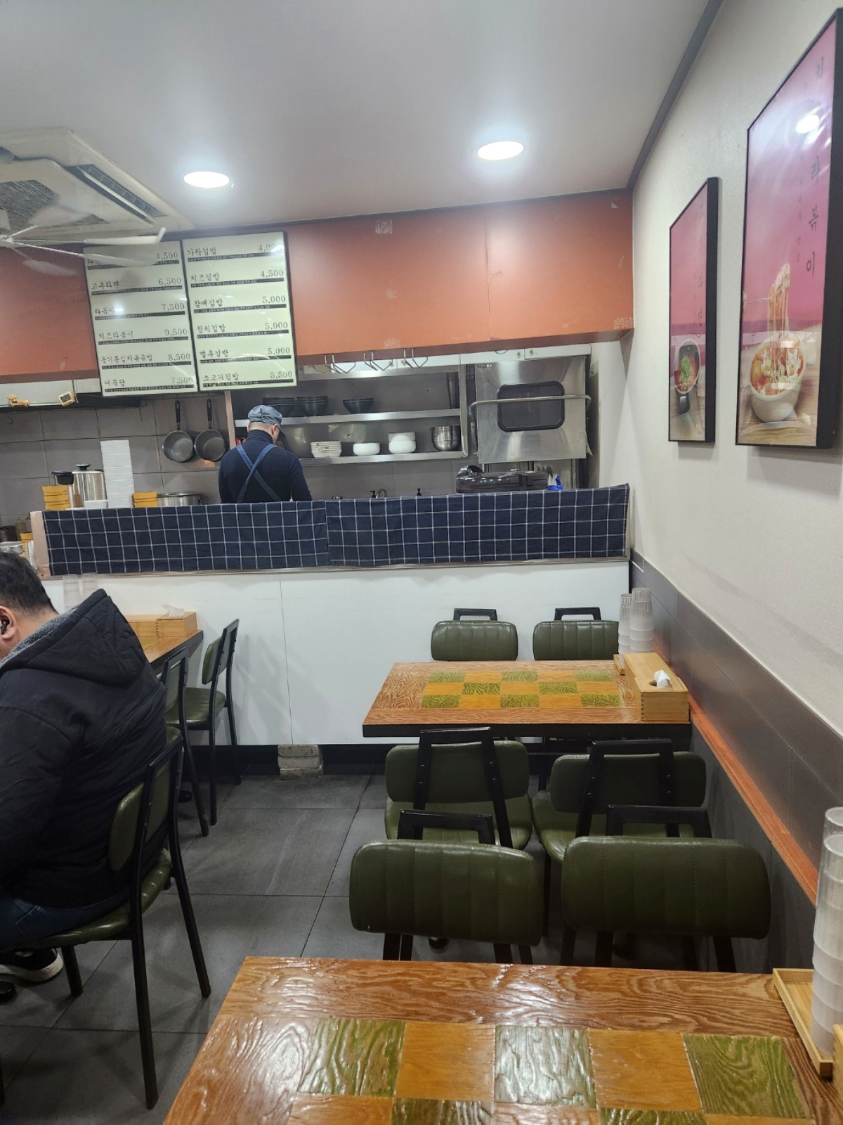 밖에서 보나 안에서 보나. 그리 크지 않다. 그래도 그시간에 갔는데, 직접 먹는 사람이 많이 있지 않았지만, 끊임없이 배달 주문이 오고 있었다. 그래서 음식이 바로 나오지는 못했다. 난 최애 라볶이를 보고 찾은건데. 여러 글을 보니, 여기는 들기름 김치볶음밥이 너무나도 유명한것 같아, 잘 먹지도 않는 김치 볶음밥을 시켜 보았다.