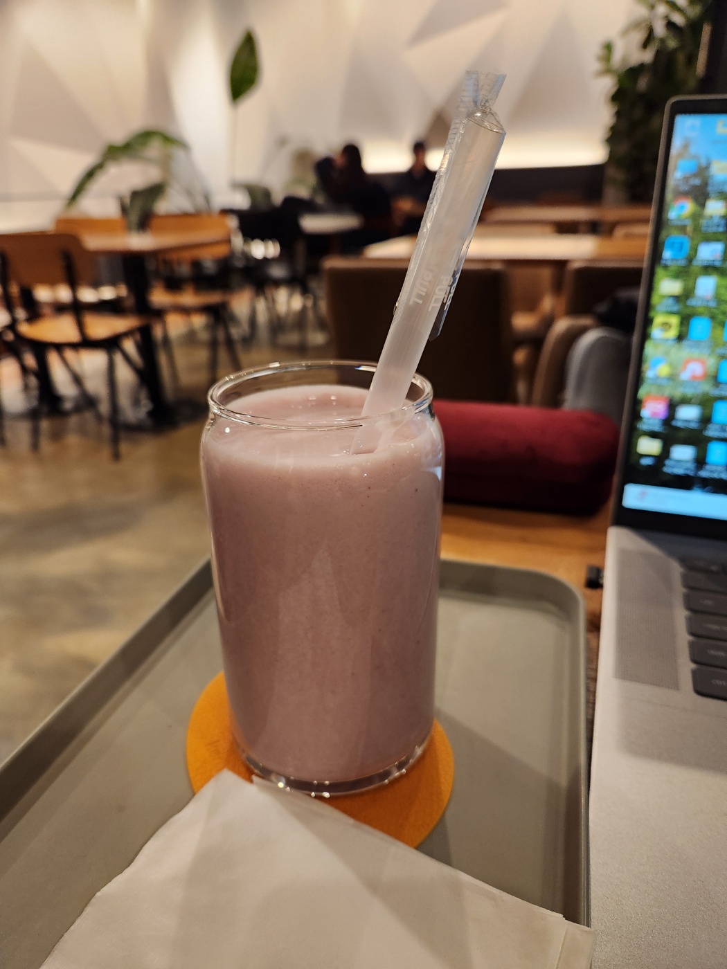난 딸기바나나쥬스를 시키고 노트북을 키고 앉았다.