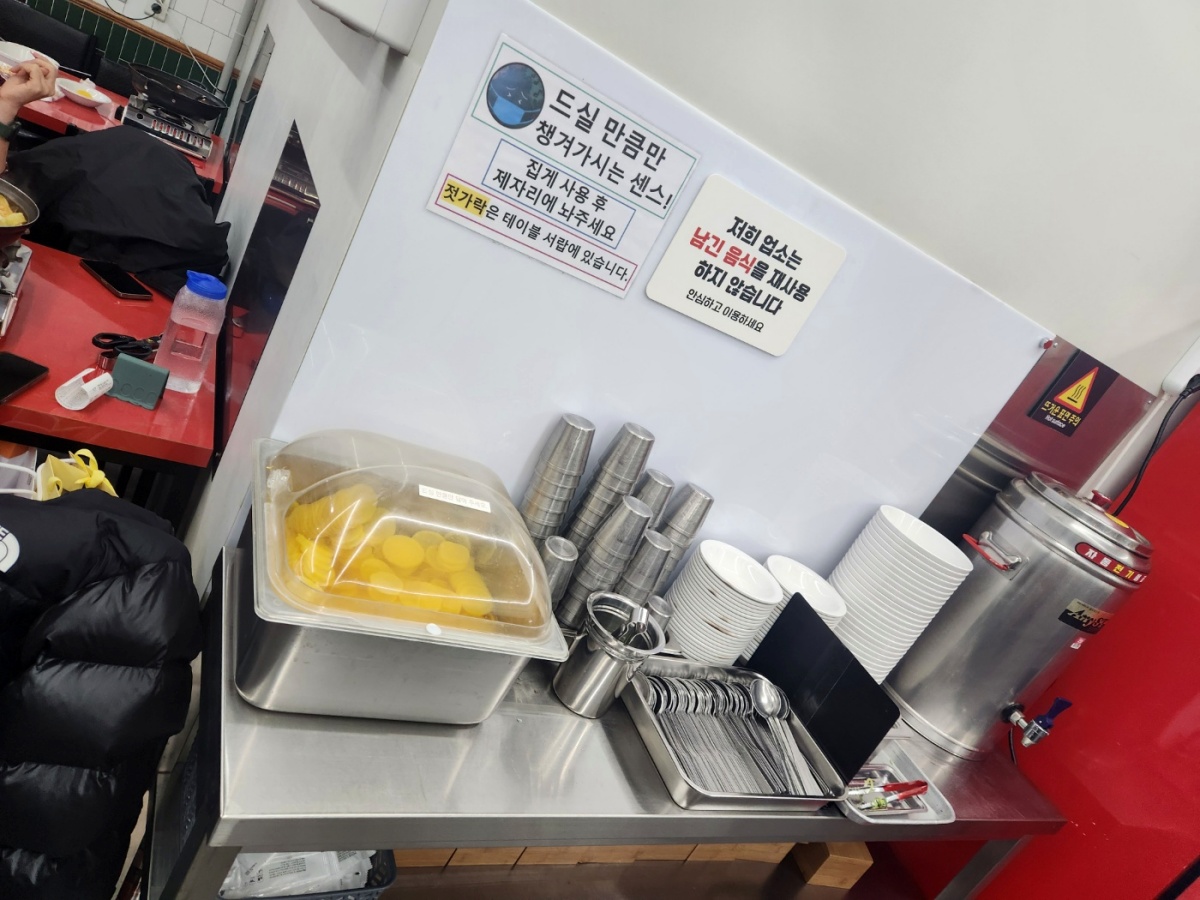 단무지와 국물는 셀프, 앞접시와 수저도 셀프 !! 그리고 음료수도 자판기에서 셀프로 뽑아서 먹으면 된다.