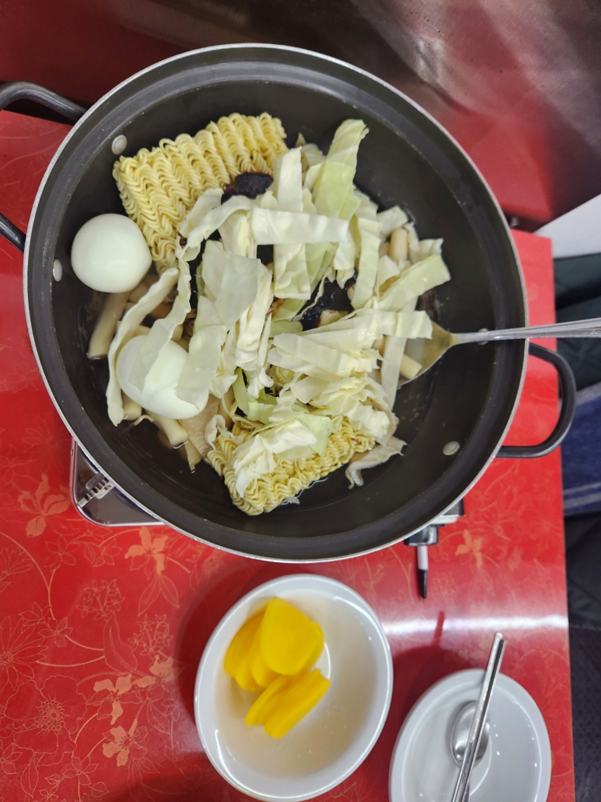 보기만해도 먹음직 스럽지 않은가... 난 아직 블로거가 아닌가봐... 처음에 나온 사진은 찍었는데.. 즉석 떡볶이가 다된 사진은 못찍음... 열심히 먹었다.. 진한 국물맛에 양념이 쏙밴 라면 사리와 쫄면 사리.. 달걀도 국물에 부셔서 먹으면 꿀맛이다.!!