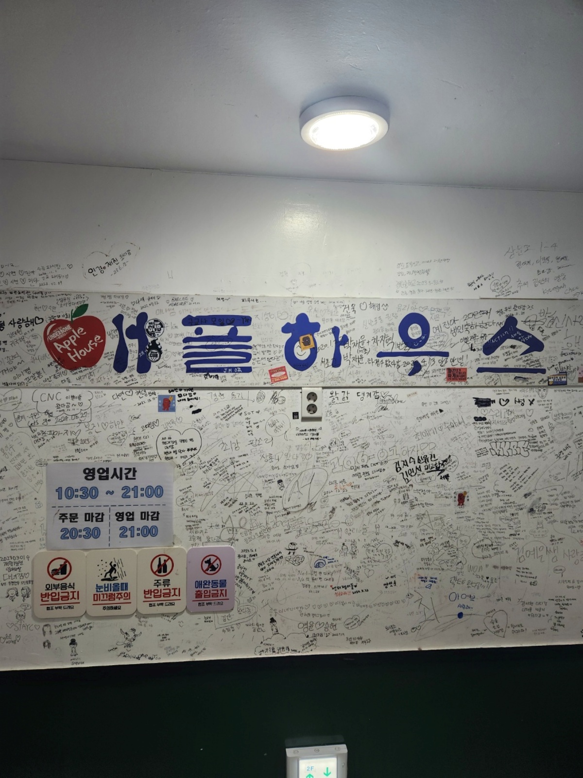 기다리는 사람들을 위해 재빨리 먹고 나왔다.!! 나오며 아쉬운 마음에 찍은 애플 하우스 간판!!