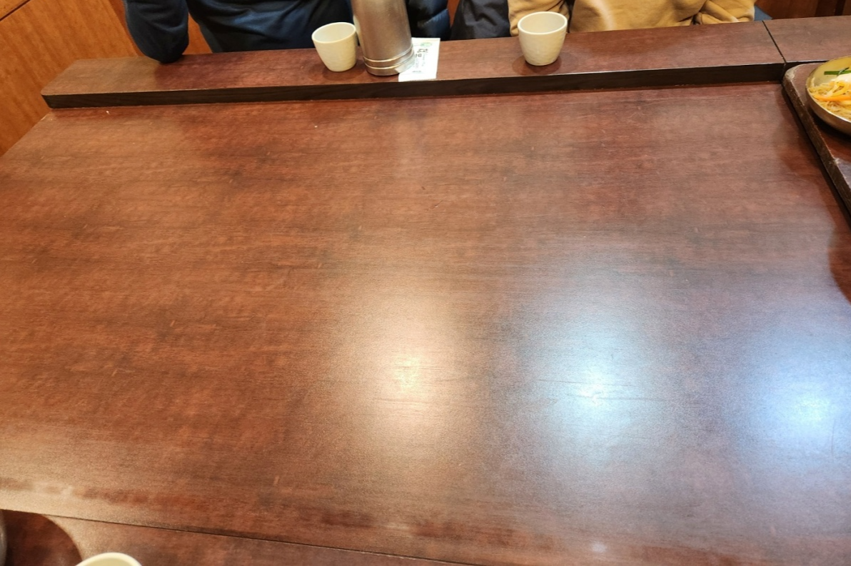 상에 가운데에 홈이 있어서 한꺼번에 드르륵 상을 끼워서 한상이 완성되는. 아주 멋진 광경을 볼 수 있다.