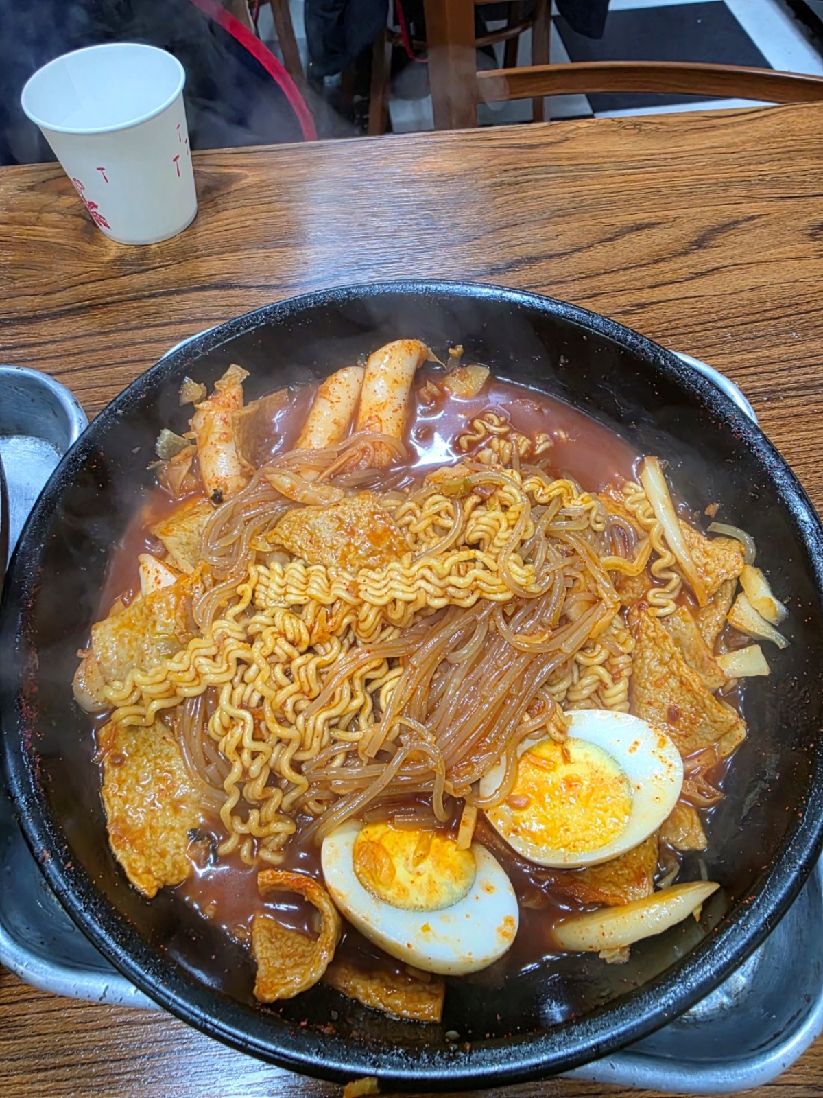 음식은 즉석으로 만들어지는데, 금방 나와서 라면이 꼬들꼬들 내 취향임. 그렇다고 양념이 안 배거나, 밍밍하지 않음. 양념이 눅진하게 녹아들어서. 짜겠다 싶지만.. 또 짜지 않음. 그렇다고 매운가..?? 싶지만 맵지 않음. ㅎㅎㅎ