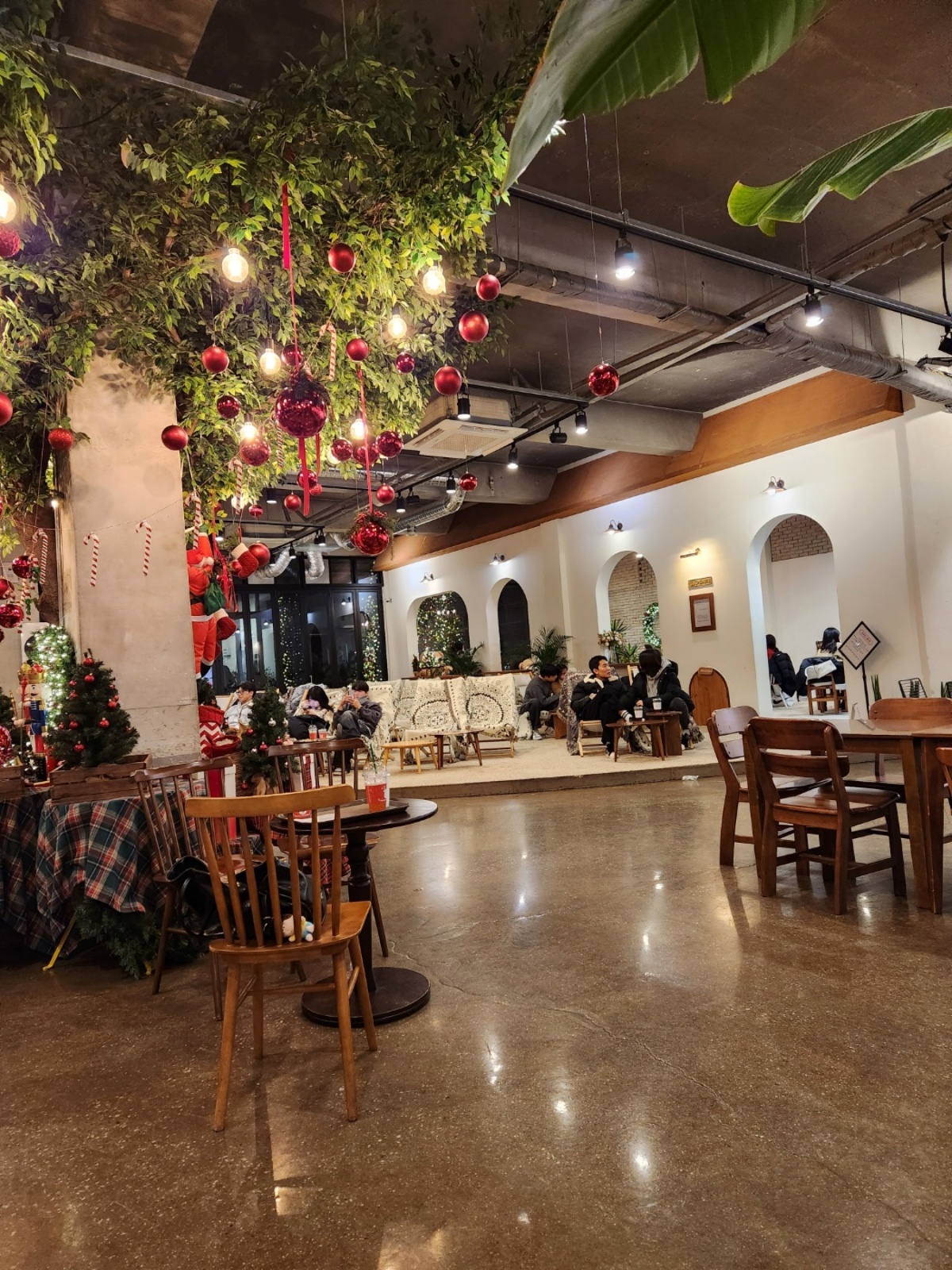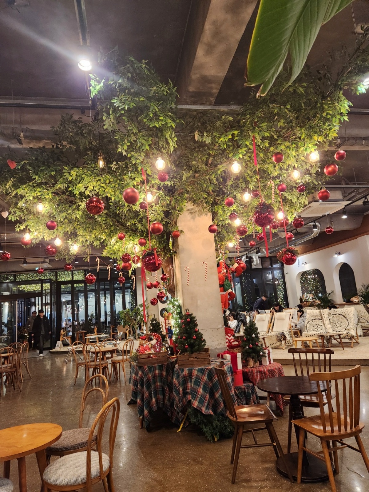 카페 내부 중앙에 트리나무가 이쁘게 트리꽃을 피웠다. 여러가지 크리스마스 소품들과 함께 아기자기하게 꾸며져 있는것을 보였다. 저 흰벽 아치 안쪽에도 곰돌이와 트리 소품으로 예쁘게 꾸며져 있는데.. 극 I인 나로서.. 글을 써야 하는 소명을 저버리고, 사진을 찍지 못했다. 하지만 다른 스팟을 찾았으니..