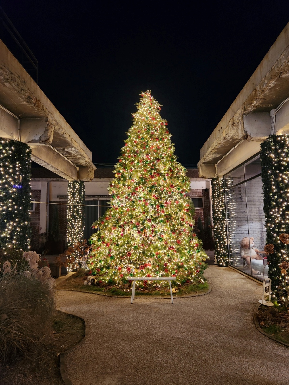 카페 내부 통로로 나가면 이렇게 이쁘게 꾸며진 트리를 발견할 수 있다. 추워서 아무도 안나와 계시니. 더 찰칵찰칵!!